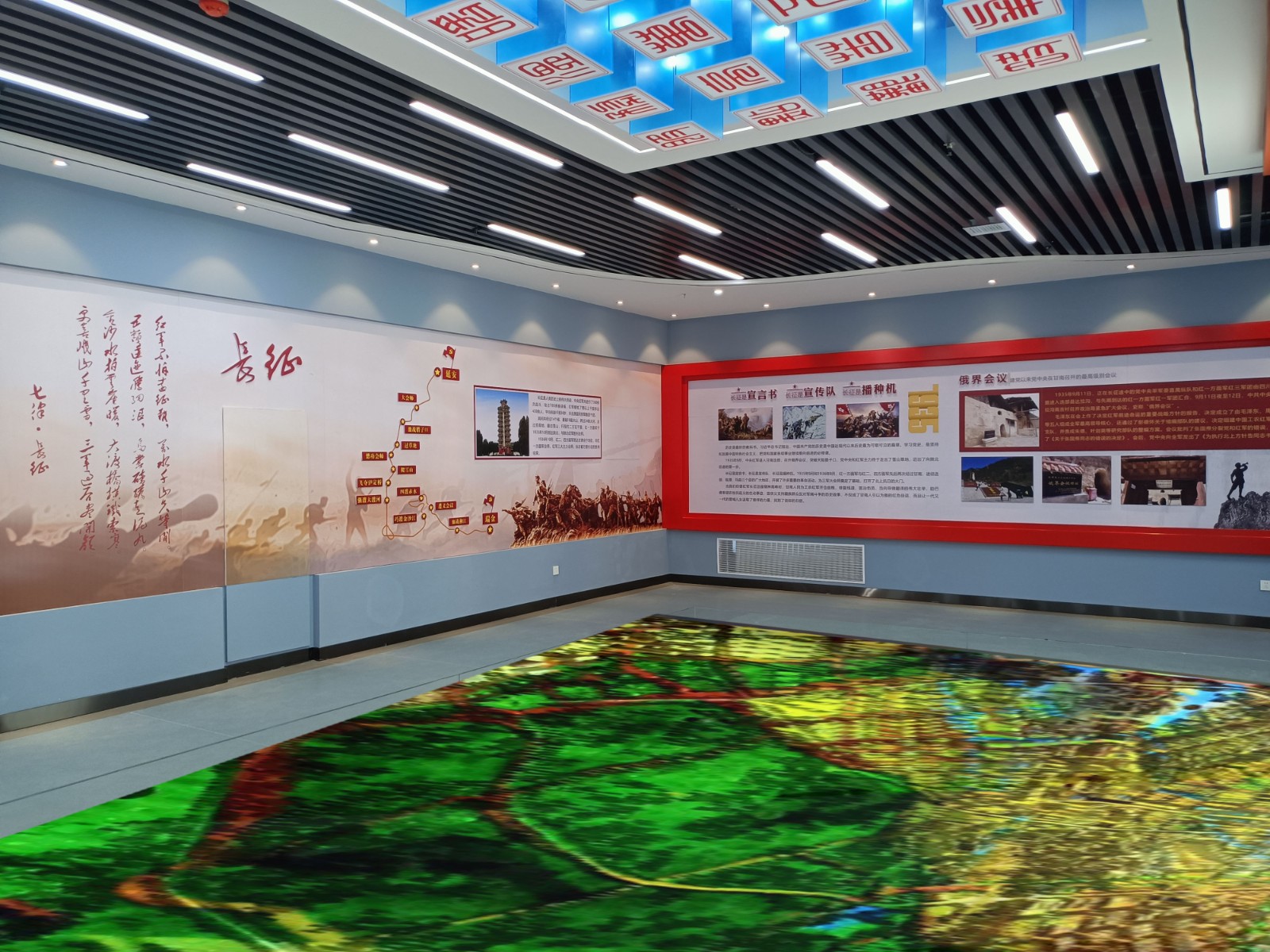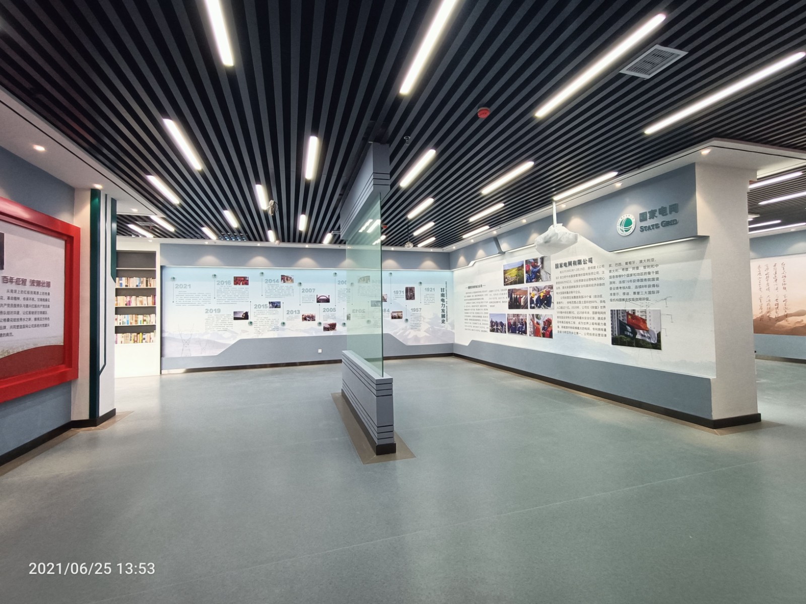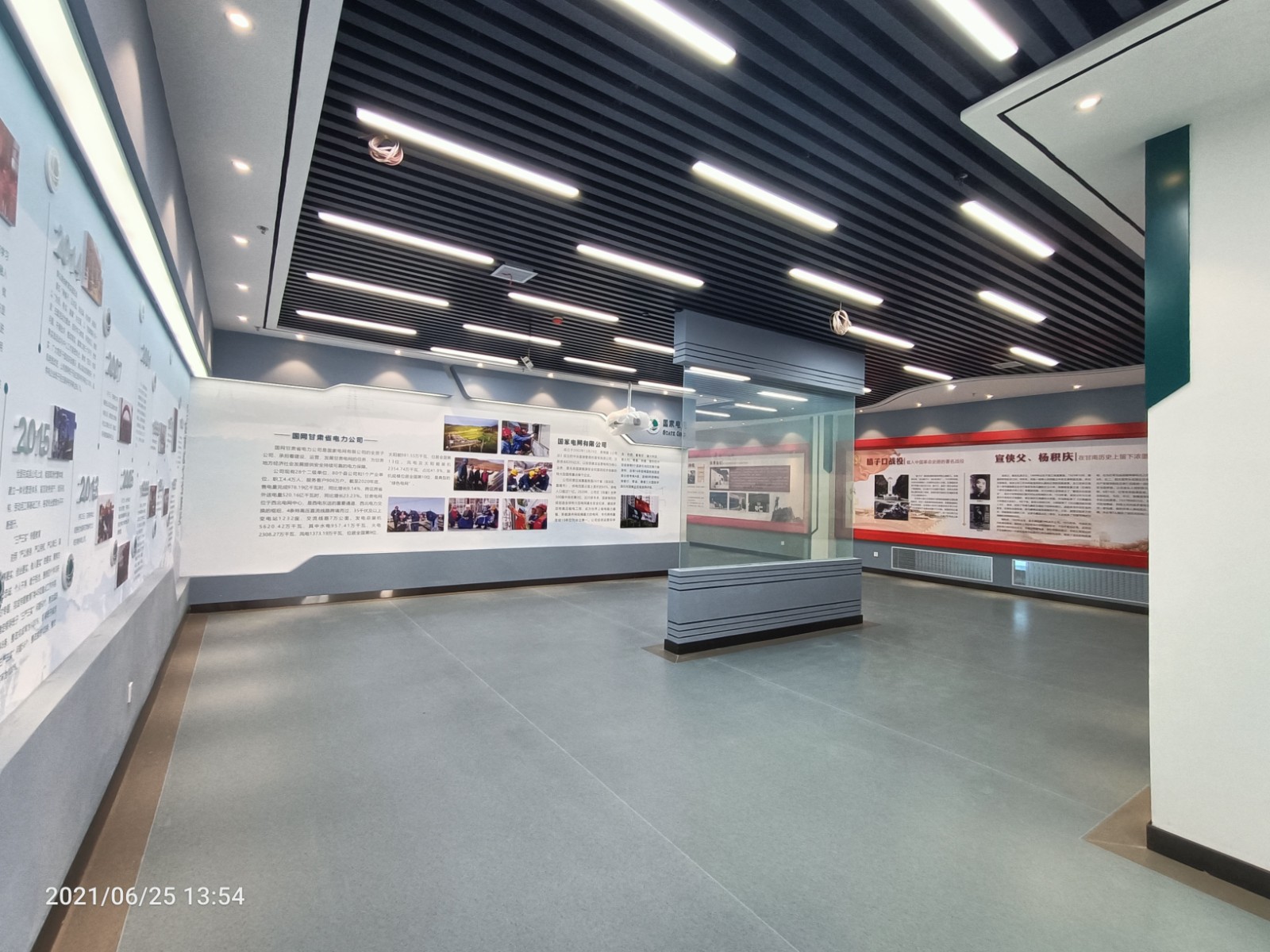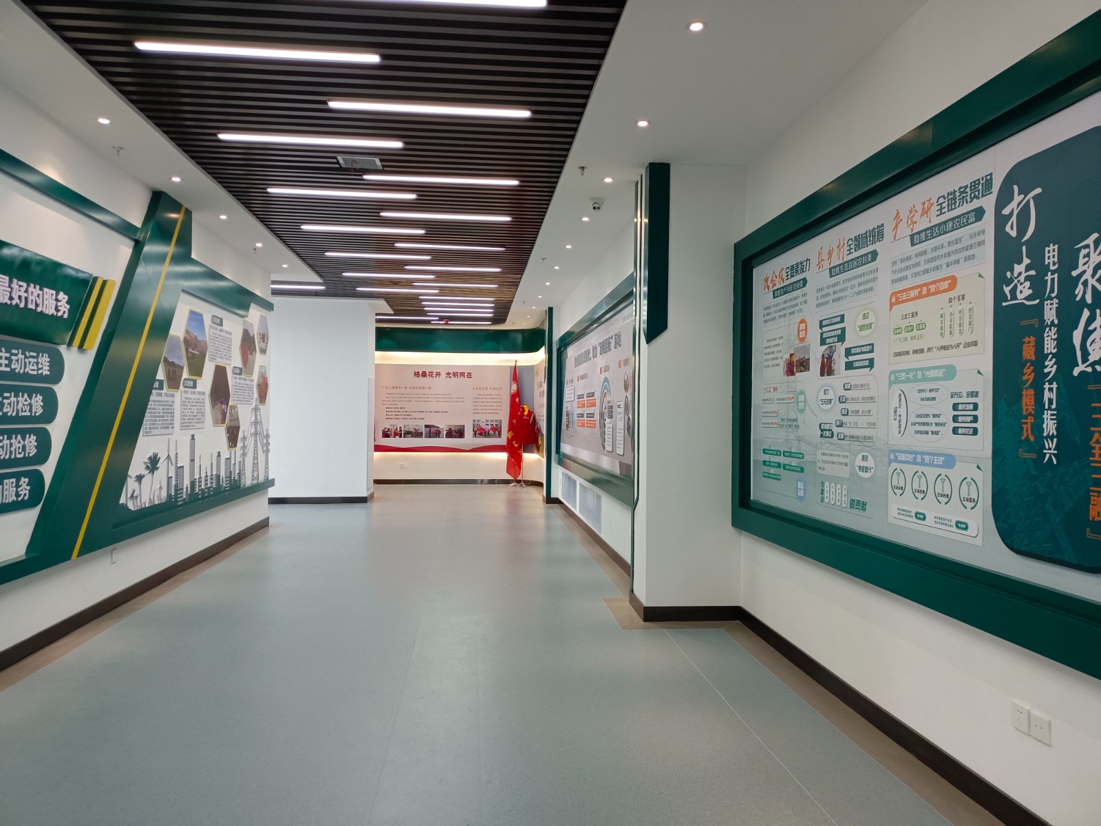 基地一樓為精神文化宣教區(qū)域,共分序言、初心引領、黨旗引頒、紅色甘南黨史教育、電網(wǎng)企業(yè)文化、甘南電力發(fā)展展示、紅色經(jīng)典智慧閱讀等區(qū)域。