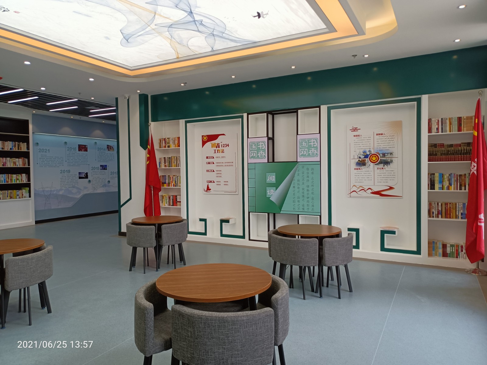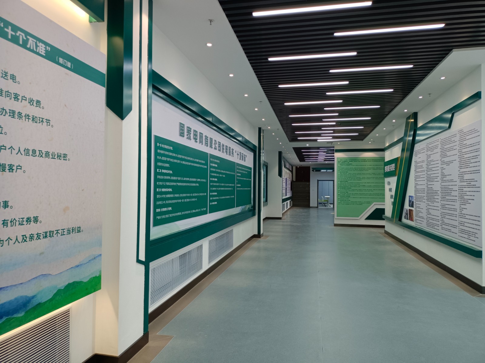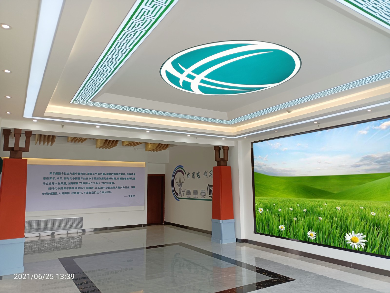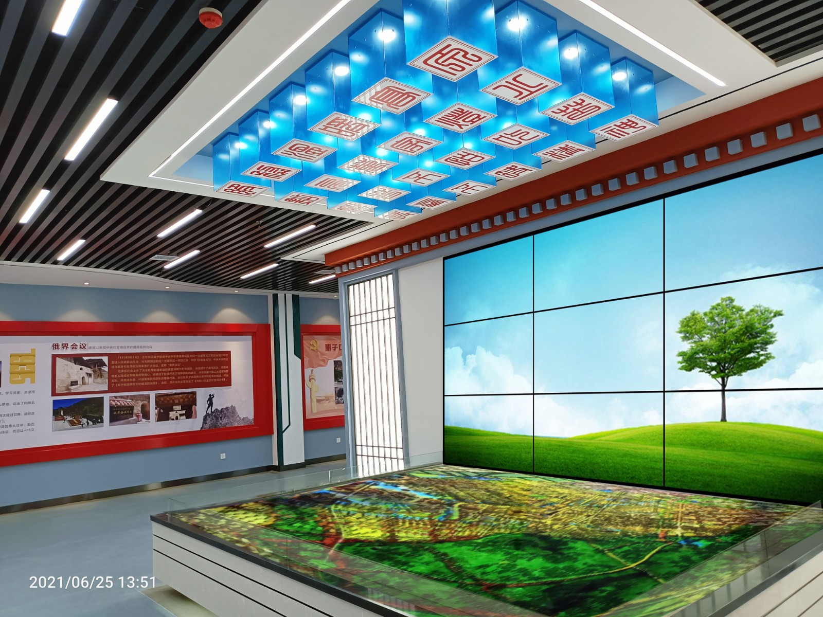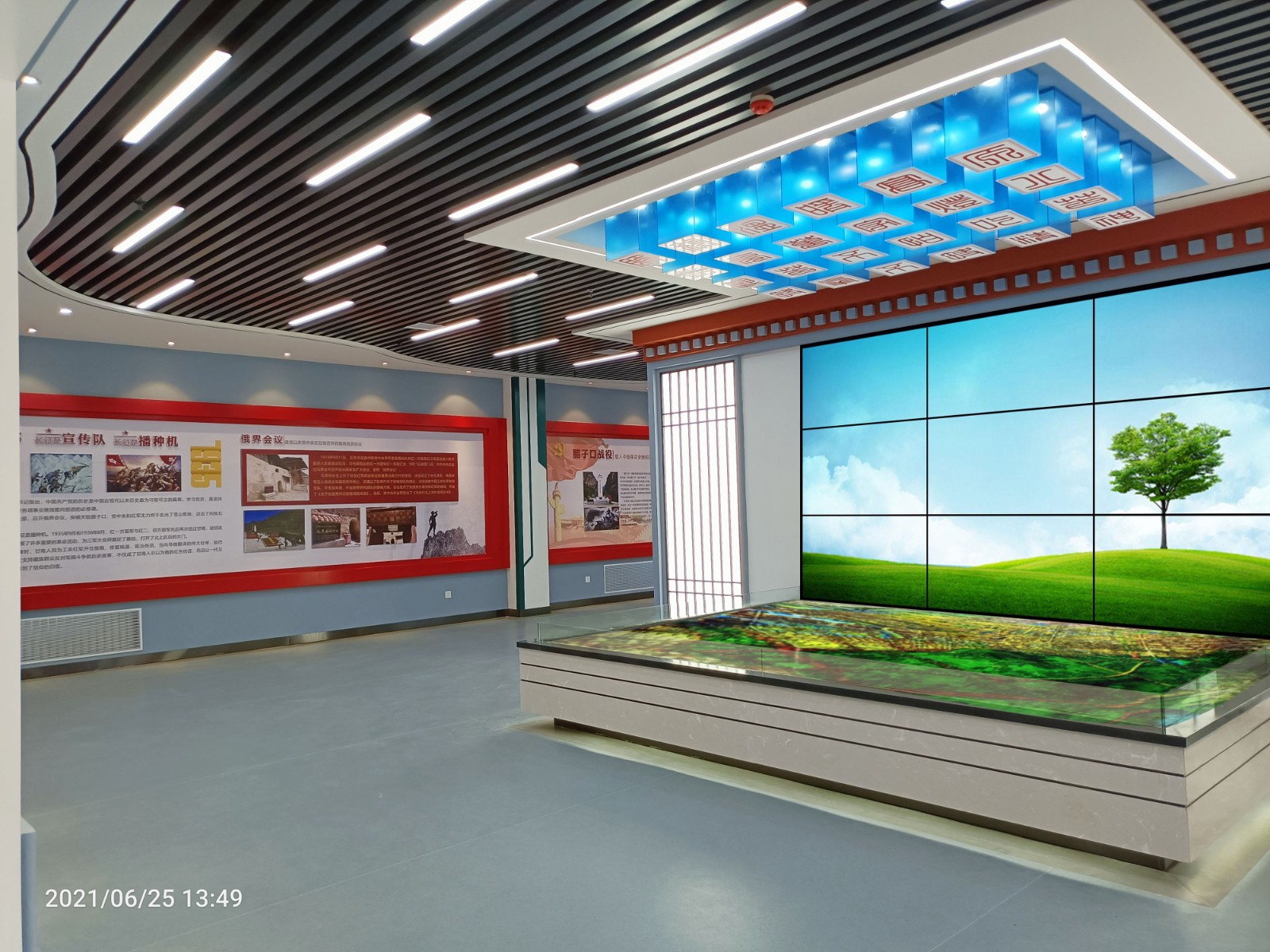 基地一樓為精神文化宣教區(qū)域,共分序言、初心引領、黨旗引頒、紅色甘南黨史教育、電網(wǎng)企業(yè)文化、甘南電力發(fā)展展示、紅色經(jīng)典智慧閱讀等區(qū)域。