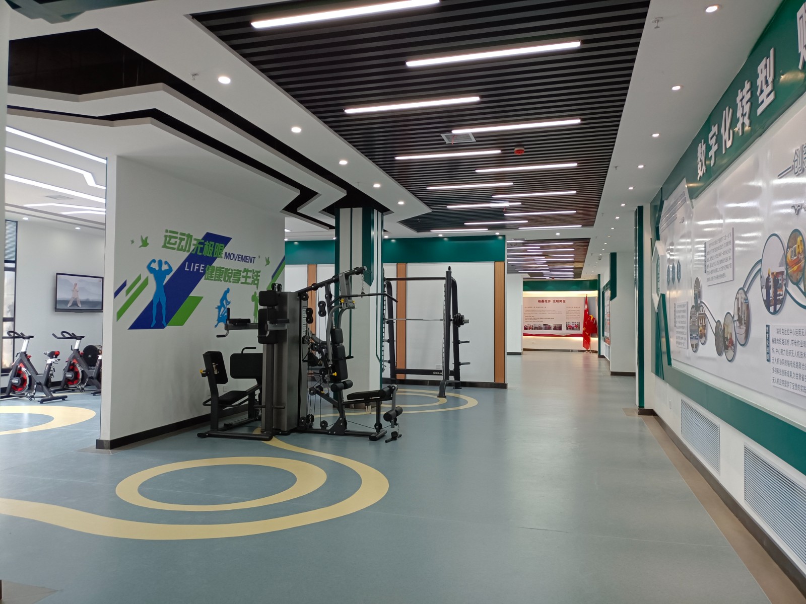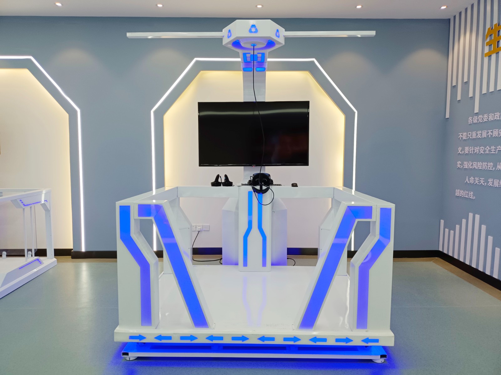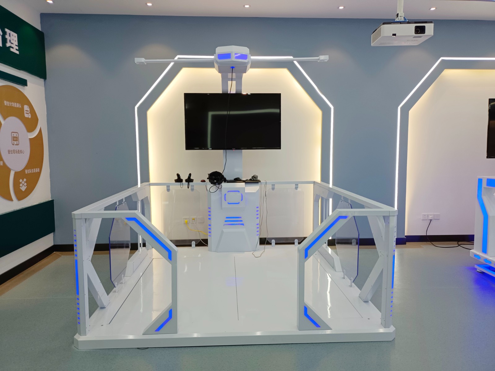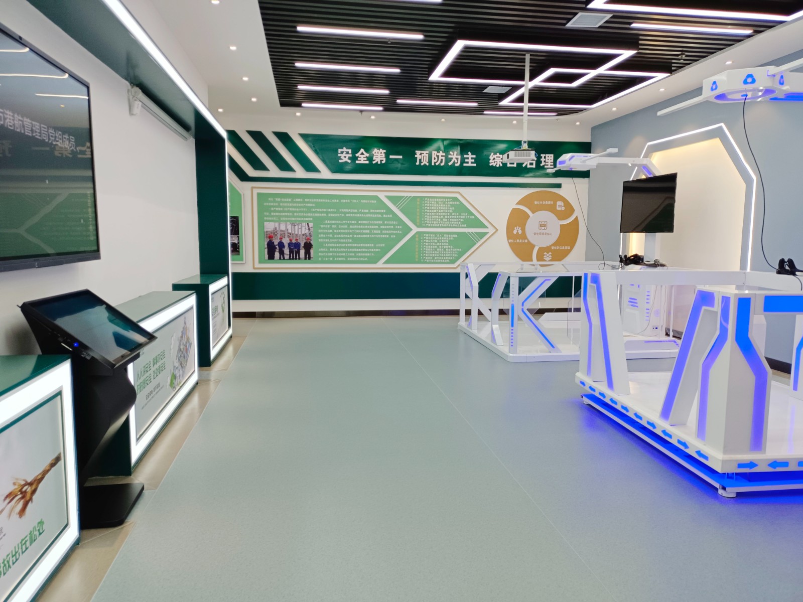 基地二樓為實訓活動實操區(qū)域,共分安全VR體驗、無人機模擬實操、電力營銷實訓、職工健康運動、學習交流多功能廳和創(chuàng)新創(chuàng)效工作窒等區(qū)域。