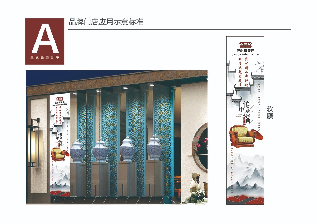 本標(biāo)志的創(chuàng)意原點(diǎn)是:以匠心富美佳品牌名稱為載體,以“富”字為設(shè)計(jì)無素,勾畫出古典紅木家具的太師椅為原型,寓意匠心富美佳的品牌地位,巧妙的結(jié)合創(chuàng)作理念,詮釋了“匠心精工賦神韻、品質(zhì)卓越富美佳”的品牌理念和神韻。