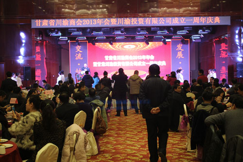 12月20日,甘肅省川渝商會2013年年會暨甘肅川渝投資有限公司成立一周年慶典在蘭隆重舉行。當天,甘肅省委、省政府、省委統(tǒng)戰(zhàn)部、省工商聯(lián)等相關領導、甘肅省川渝商會合作銀行及全國駐甘異地兄弟商協(xié)會等眾多單位共700余人共聚一堂,蘭州市平涼商會黨支部書記、常務副會長郭林生、常務副會長樊平參加了慶典活動。