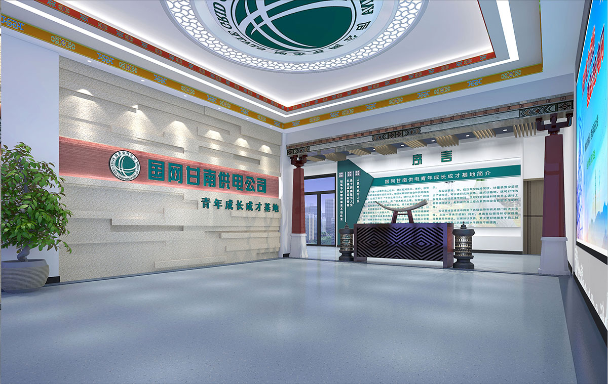 基地一樓為精神文化宣教區(qū)域,共分序言、初心引領(lǐng)、黨旗引頒、紅色甘南黨史教育、電網(wǎng)企業(yè)文化、甘南電力發(fā)展展示、紅色經(jīng)典智慧閱讀等區(qū)域。