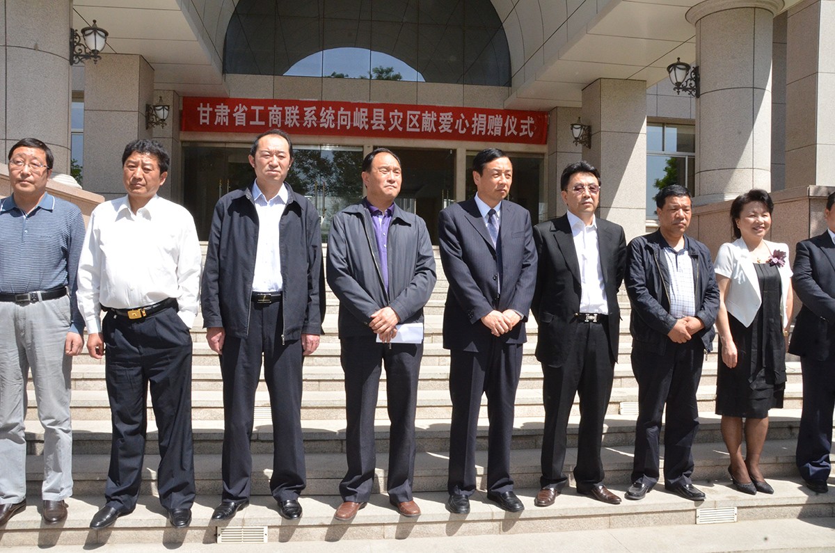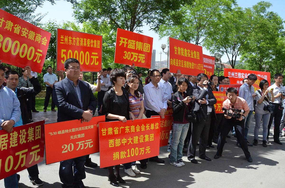 甘肅省川渝商會常務(wù)副會長兼秘書長張建國代表商會現(xiàn)場舉牌捐款捐物